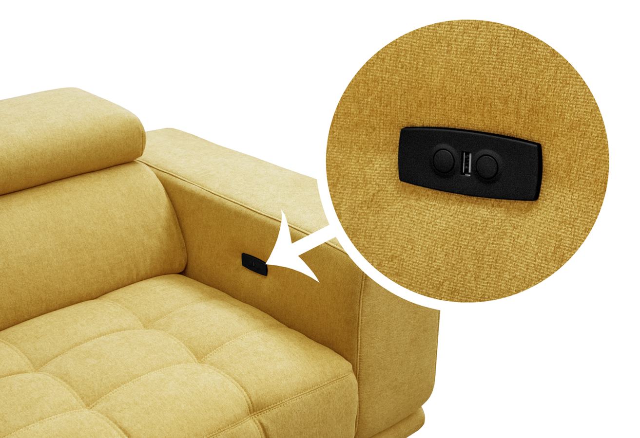 Nastavitelné opěrky zad jsou již dnes u sedacích souprav samozřejmostí. Příplatková, nastavitelná hloubka sedáku při otomanu umožní pohodlné sezení i prostorné místo k ležení. Za příplatek je také možno objednat sedačku s motorovou výsuvem celé sedákové části o 20cm. Tím získáme elegantní lůžko nebo relaxační plochu. Polohování je zajištěno dotykovými senzory a ovladač může být doplněn i USB portem pro snadné nabíjení mobilu nebo práci s notebookem.