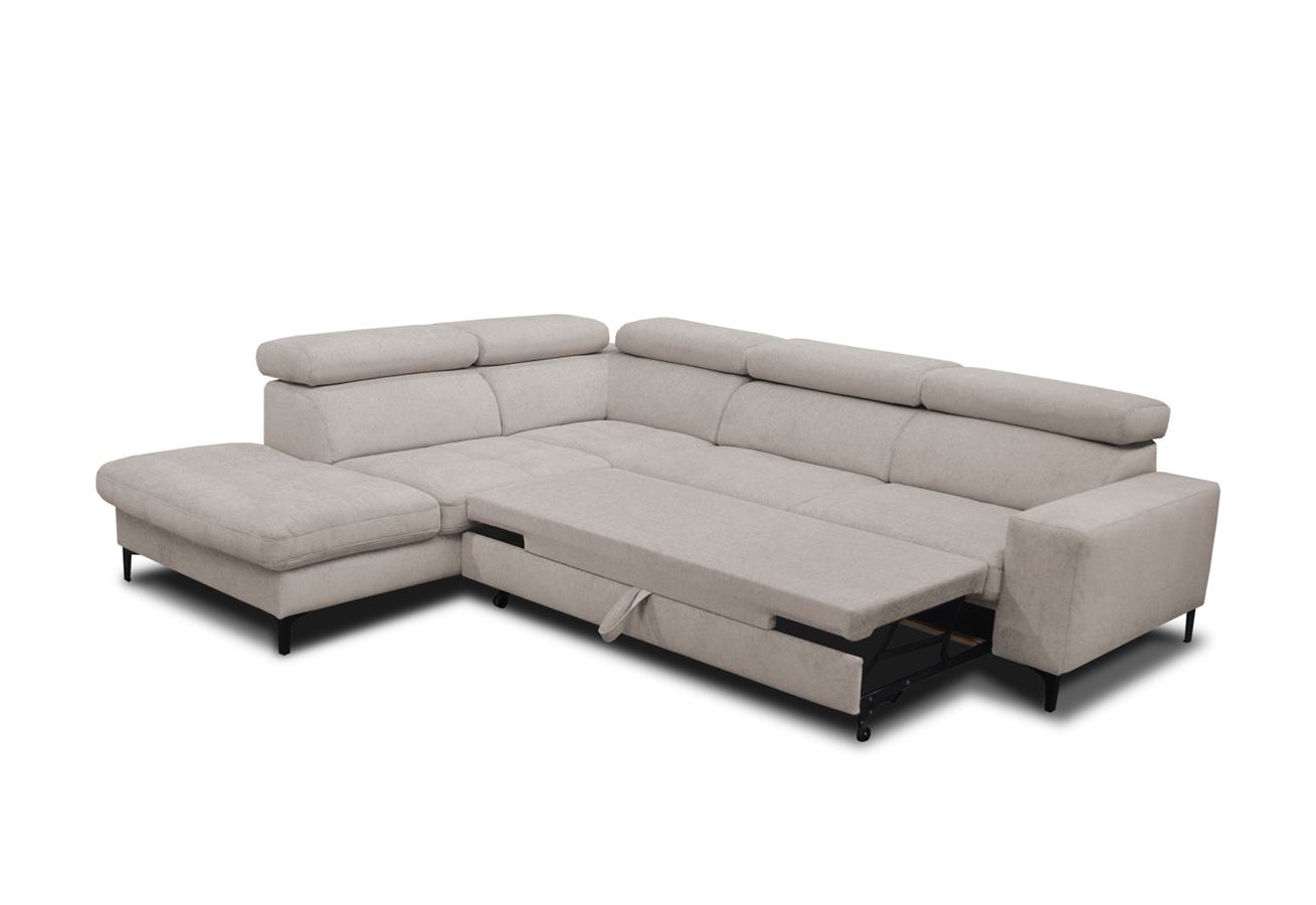 Sedací souprava Vegas má v nabídce rozklad, který je vyroben ze stejného potahu jako sedací souprava. Žádná nepěkná, technická textilie. Pro dokonalý vzhled nabízíme dva typy kovových nožiček, oba v chromu a černé matné barvě.