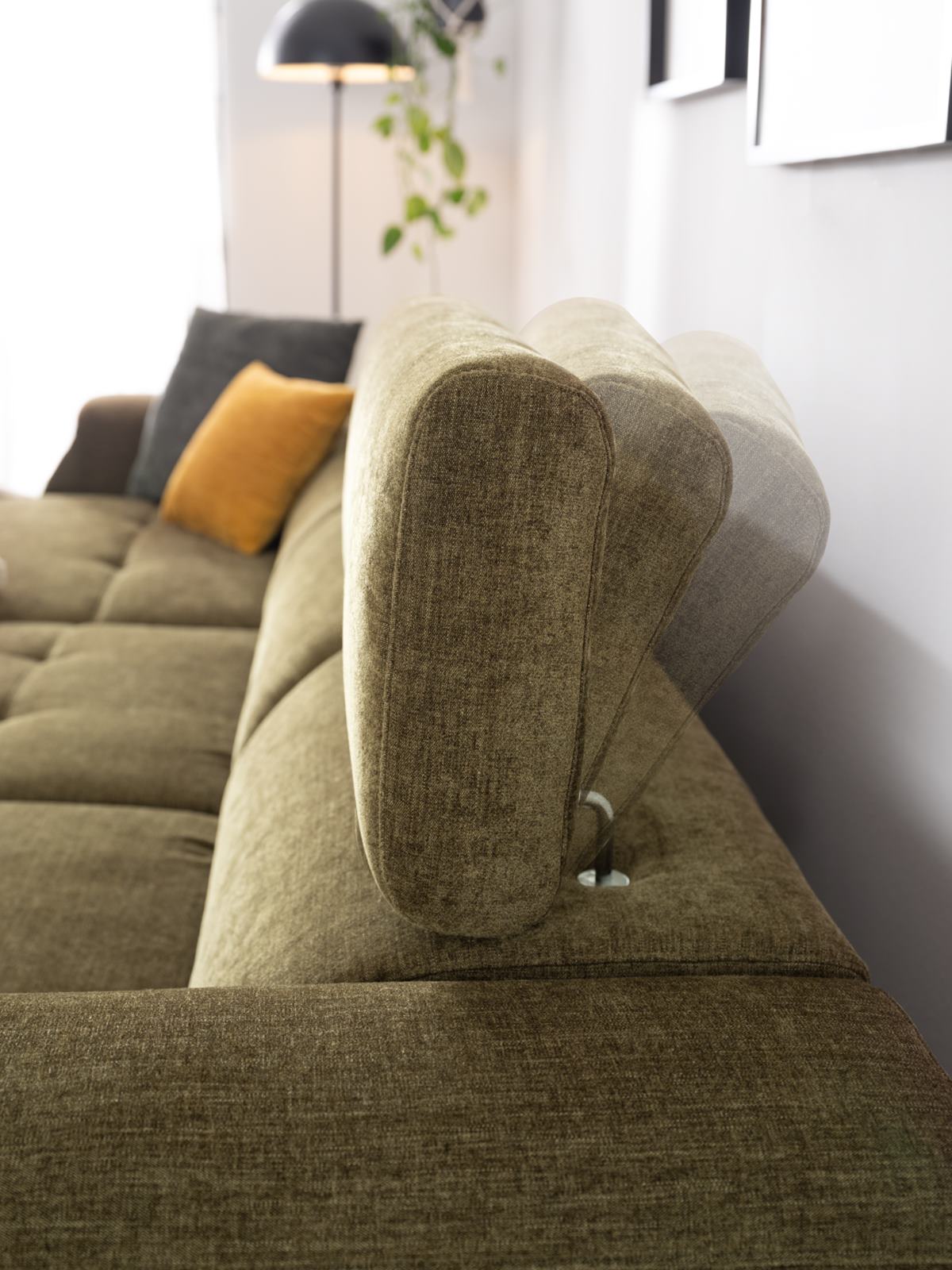 Sedací souprava Gianni je novým přírůstkem v kolekci Consepto. Masivní kostra a čelo stažené k zemi z ní dělají nepřehlédnutelný kus nábytku. Na výběr jsou dva typy područek, které razantně mění celý vzhled této novinky. Klasická, hranatá působí moderně a minimalisticky. Zaoblená područky s polštářkovou optikou dodává nádech italského venkova. Hřbetní část je dělená a obsahuje integrované, polohovatelné opěrky hlavy. Ty lze aretovat ve více úhlech a jsou bez příplatku. Efektně působí i elegantní štepování sedáků, které připomíná sedačky dřívějších dob. Model Gianni lze objednat s rozkladem, v jehož ceně vám dodáme lůžko v potahu sedací soupravy. Zákazník si také může do sedačky objednat i velký úložný prostor v prodloužené pohovce.