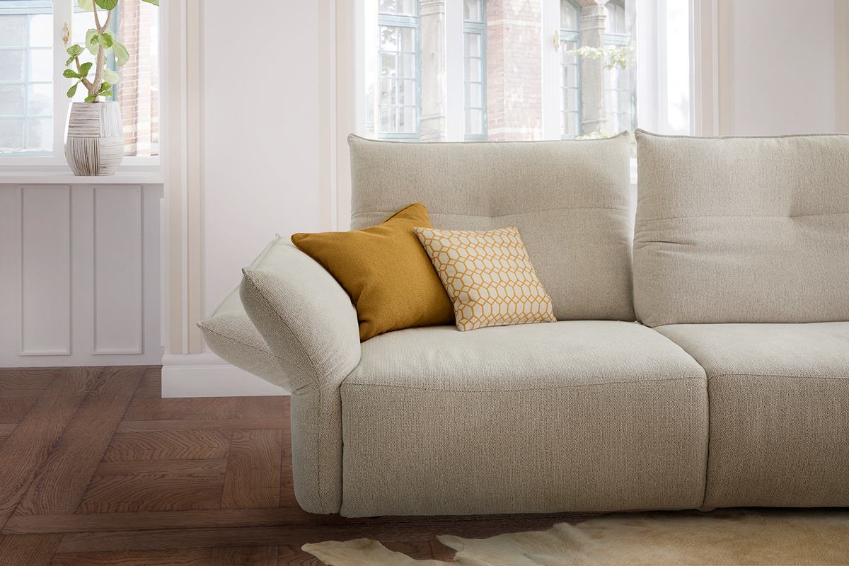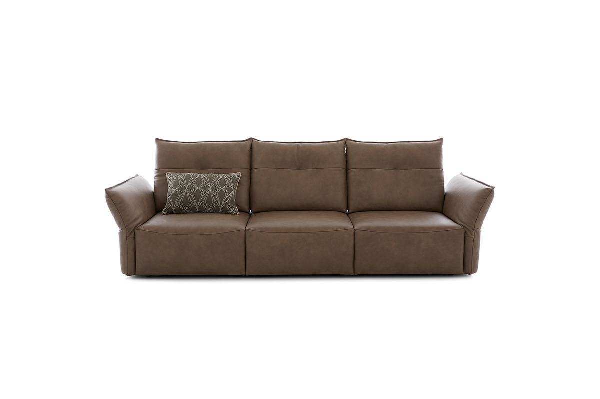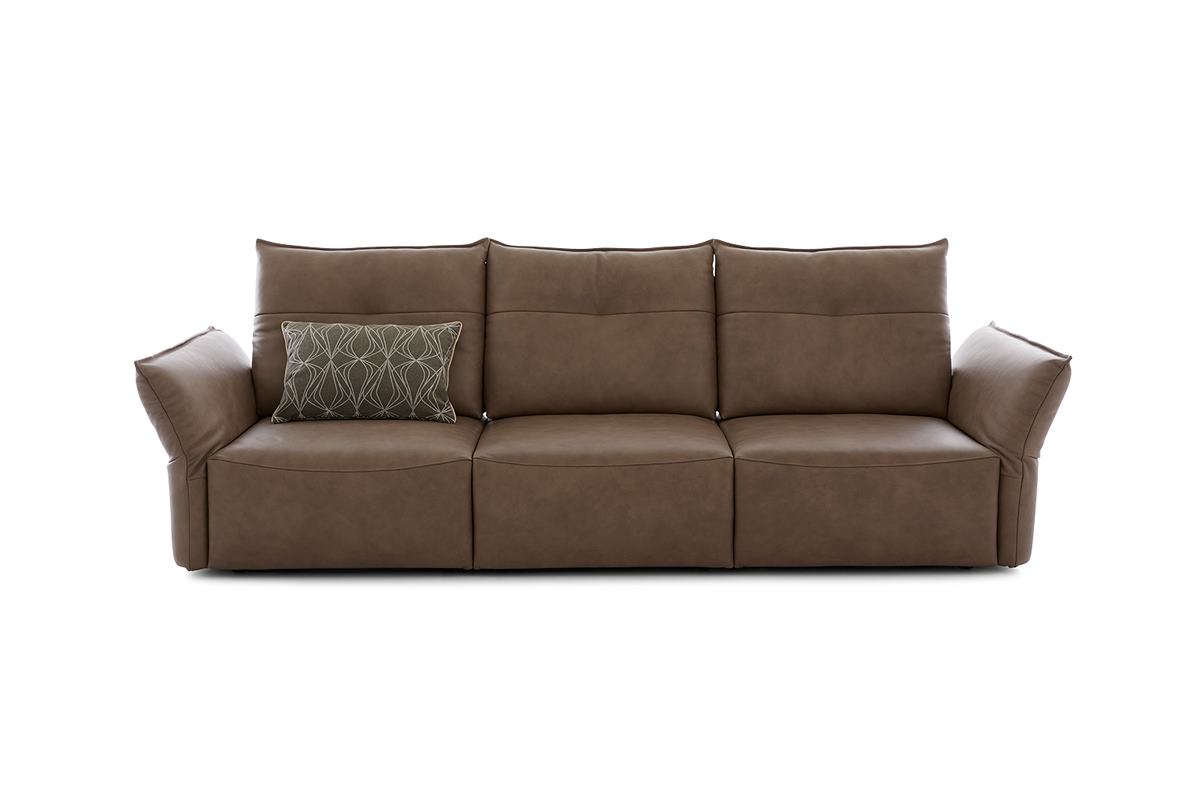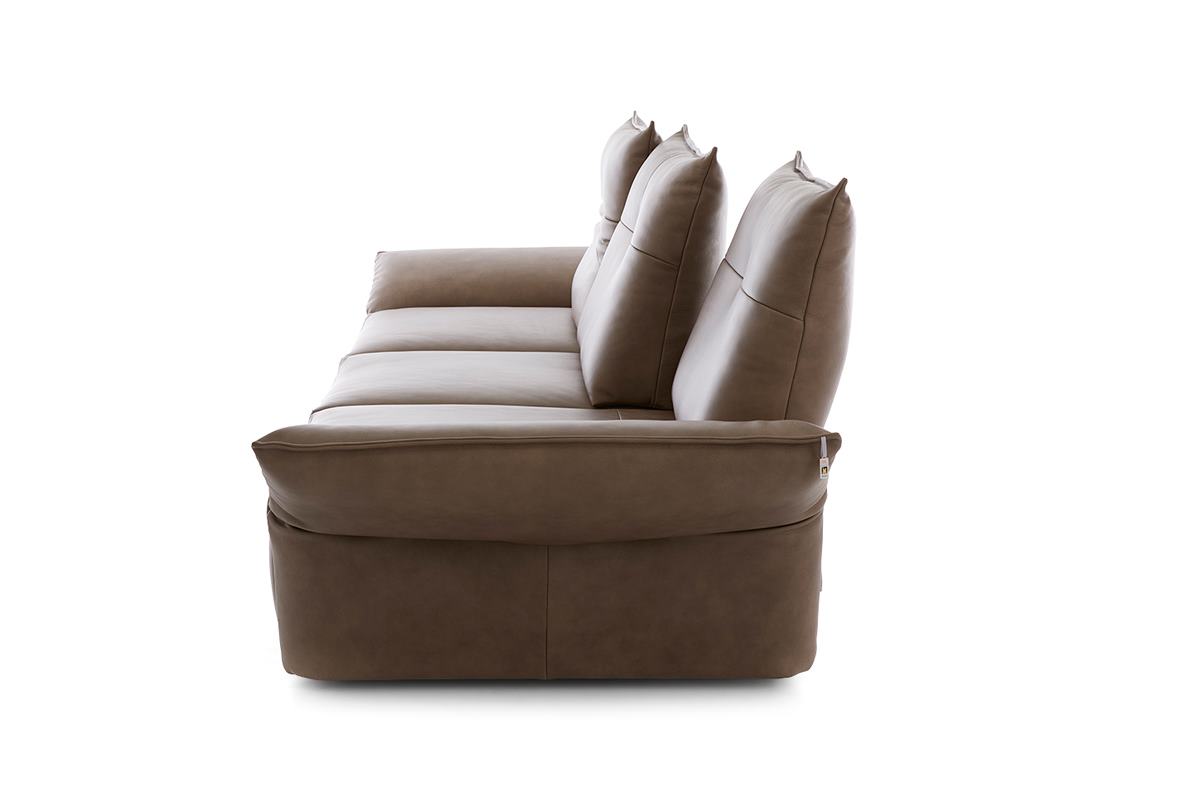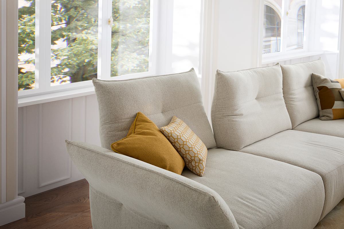 Sedací souprava Gin je novinka roku 2026. Vnikla v design centru výrobce a reflektuje nejnovější trendy v čalouněném nábytku. Po zem stažená základna je dnes vracejícím se prvkem v sedačkovém designu. Krychlový tvar a minimalisticky řešená sedáková část působí masivně, ale čistě. Zádové opěrky mají tvar polštářů a zdobí je krásné prošití a zajímavě působící štepování ve středové části. Podobný detail najdeme i na boční straně područek. Proporce jsou velmi dobře zvoleny a jako celek působí sedačka velmi příjemným, městským stylem. Standarně se vyrábí s nastavitelnou hloubkou všech sedáků. Za příplatek je k dispozici polohování hlavové části opěrky a područky.