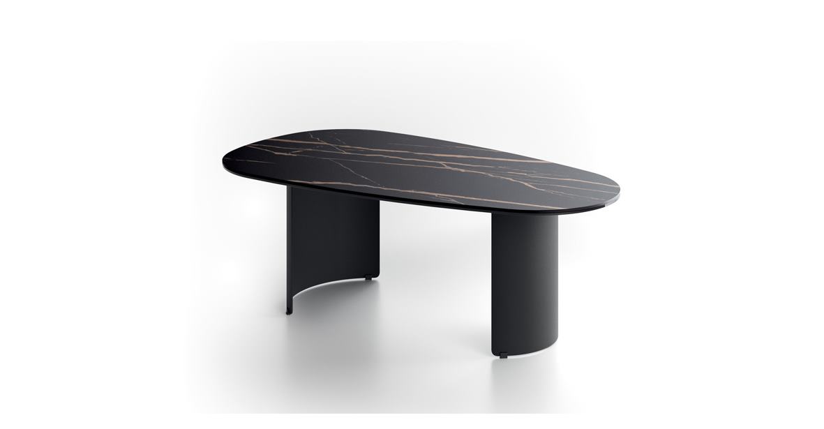 Konferenční stolek Dolmen je novinkou roku 2026 v naší nabídce. Při jeho tvorbě se bralo v úvahu několik požadavků na tvar, rozměr a materiálové složení. Podnož je vyrobena z oceli. Plát je ceramica lepená na bezpečnostním skle. Konferenční stolek Dolmen nabízíme ve třech provedeních: PO - černá + mramor nero portoro, MB - antracit + mramor bílý a MC + bronz a mramoc calacatta oro.