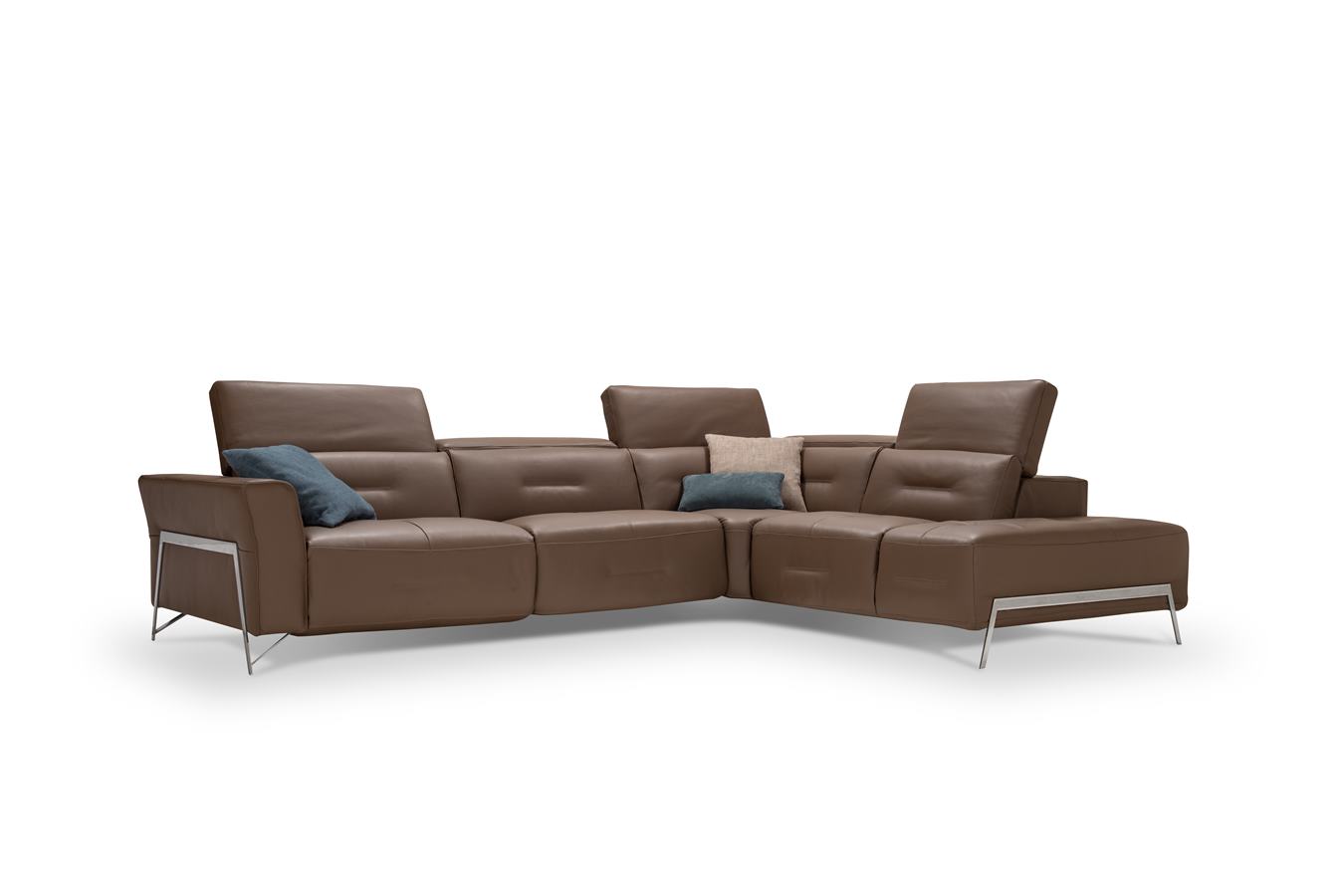 Sedací souprava HALIFAX patří k designovým kouskům této nabídky. Strohé linie jsou doplněné podlouhlým, ozdobným prošitím, které se opakuje na spodní korpusové části i na zádové opěrce. Nejzajímavěji působí krásná, kovová podnož, která na područce přechází do efektní ozdoby. Komfortem se tato sedací souprava řadí k těm měkčím. Individuální pohodlí dotváří nastavitelné podhlavníky. Za příplatek je možné objednat také elektrické polohování. Sedací soupravu nabízíme v kůži i látce.