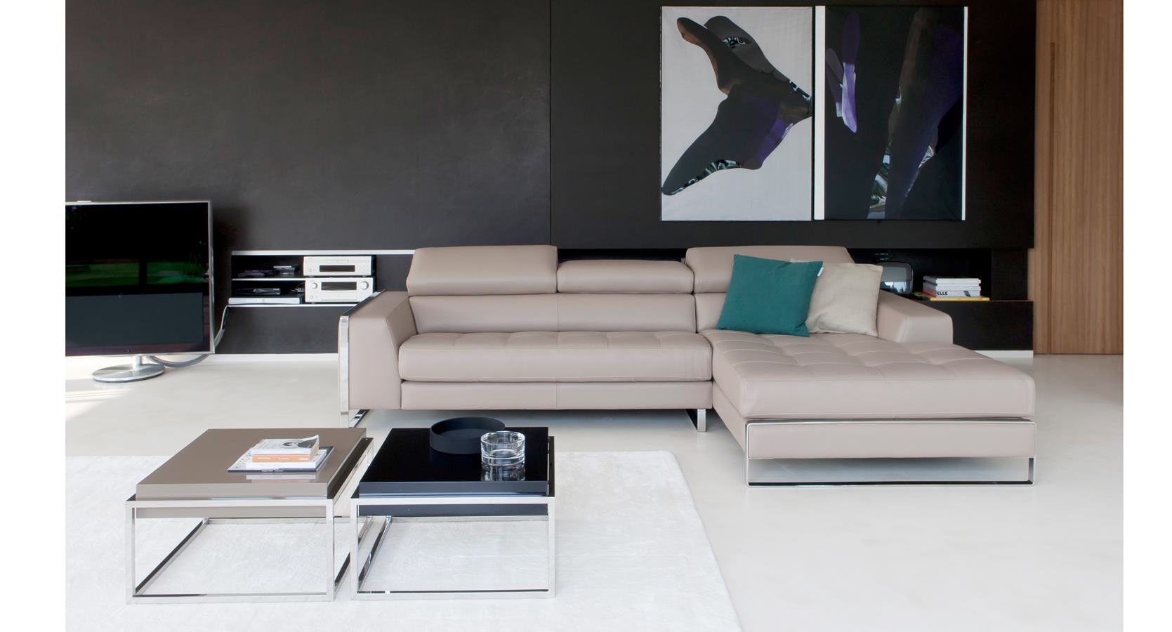 Sedací souprava Raymond představuje velmi čistou verzi italského designu. Masivní, ozdobně štepované sedáky jsou jediným markantním prvkem na jinak minimalistické sedačce. Výšku 73cm lze jednoduchým nastavením opěrek zvýšit na pohodlných 92cm. Masivní područka se šikmým seříznutím působí velmi zajímavě. Doplňuje ji kovový plát, který lemuje celý bok sedací soupravy a v dolní části přechází do podnože.