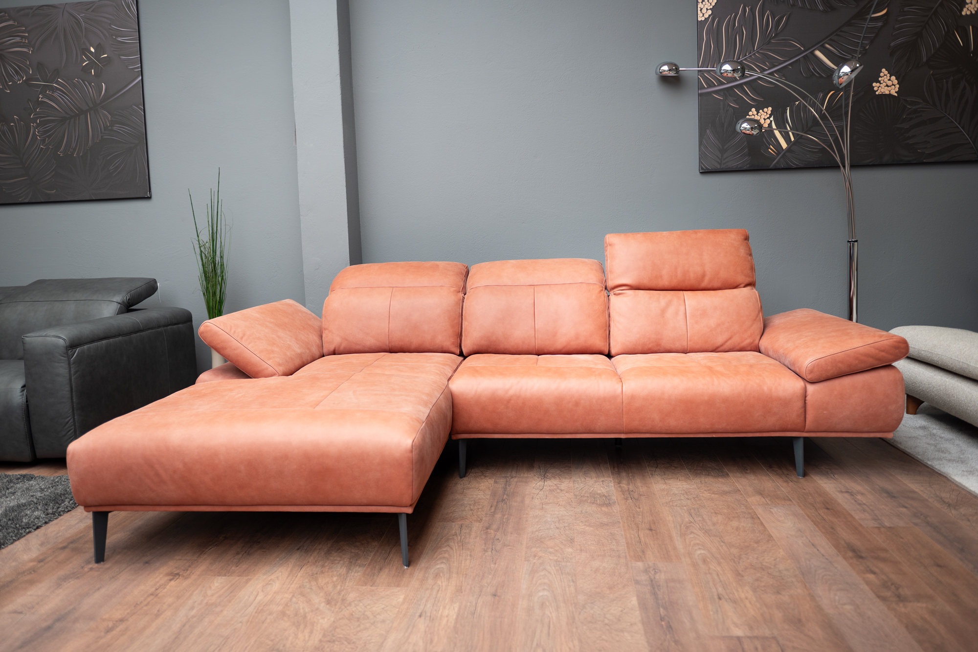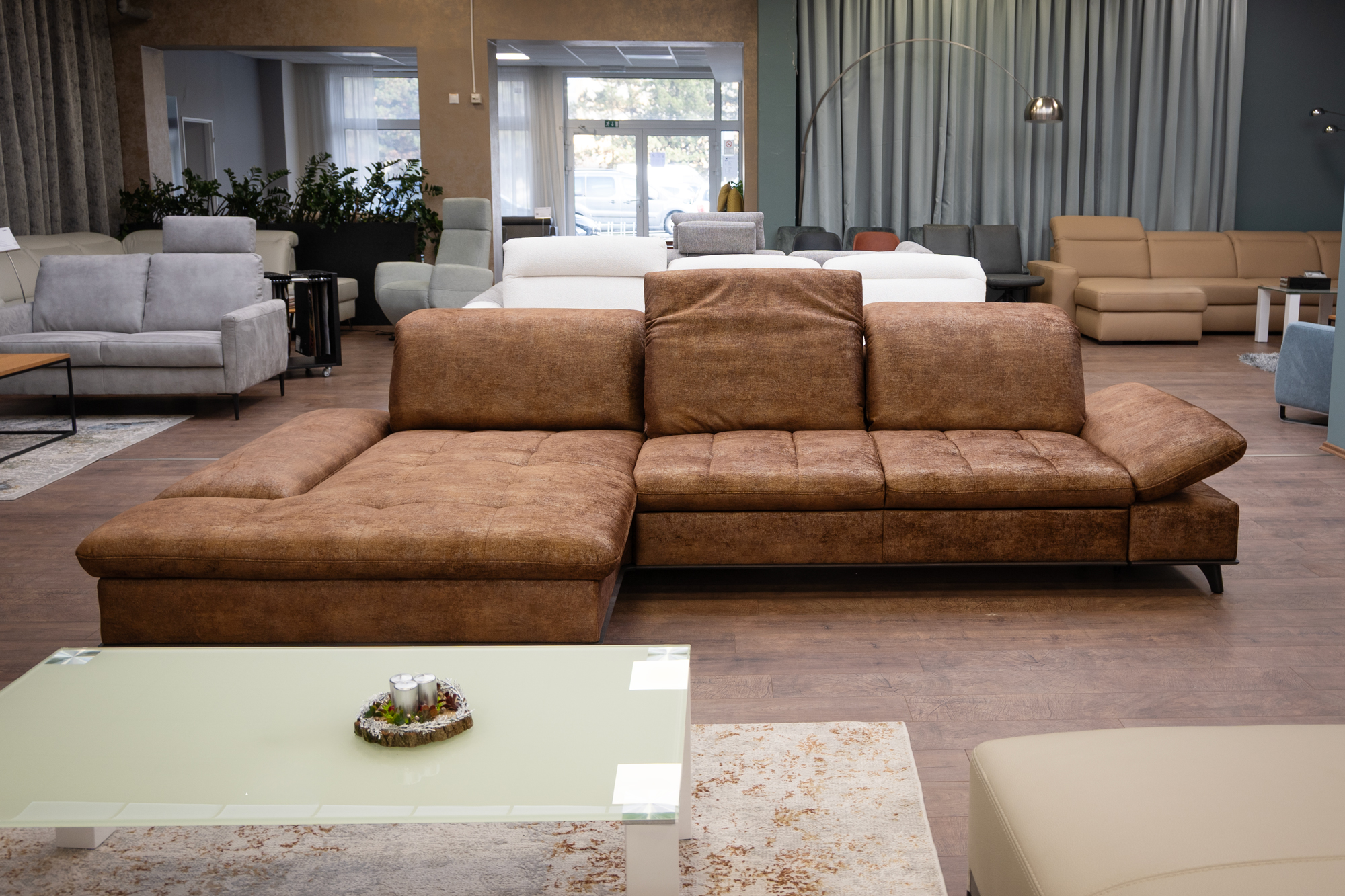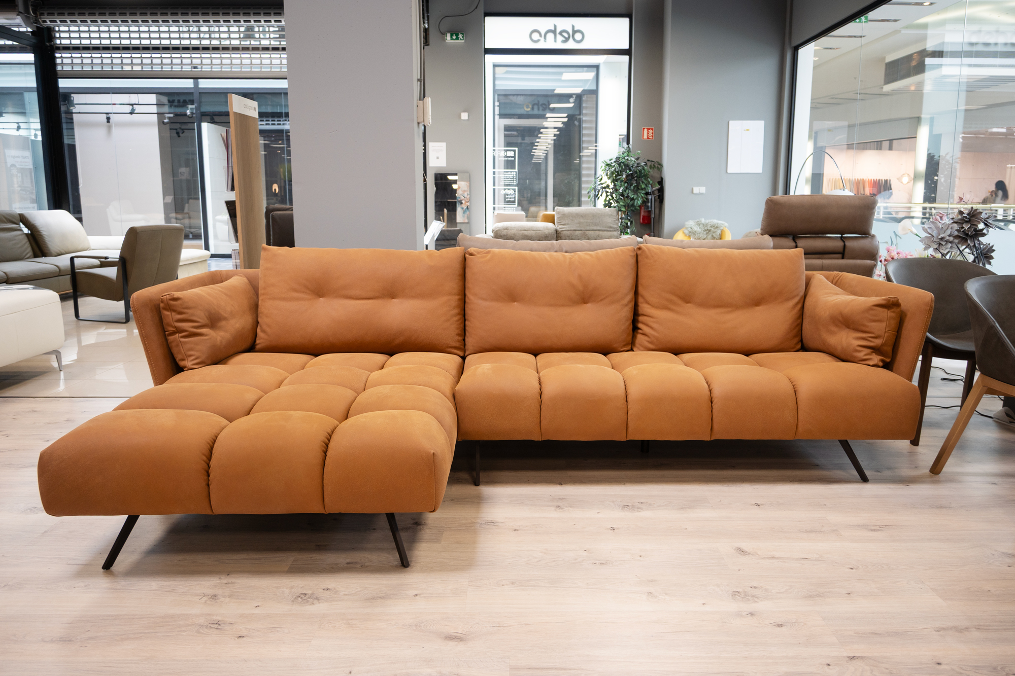 Sedací souprava slouží jako exponát na showroomu v Bratislavě. Nechybí komfortní prvky, jako nastavitelná hloubka sedáků, výškově nastavitelné opěrky hlavy, polohovatelné područky. Sedačka má rozklad ve stejném potahu a velký úložný prostor.