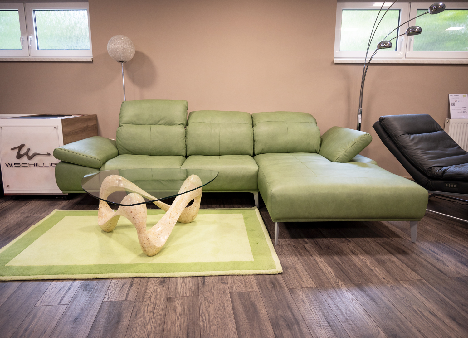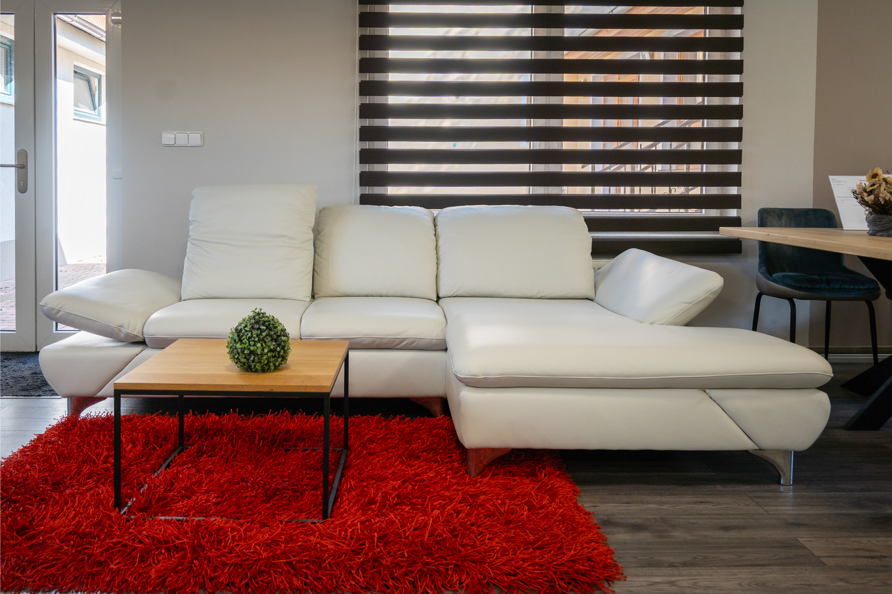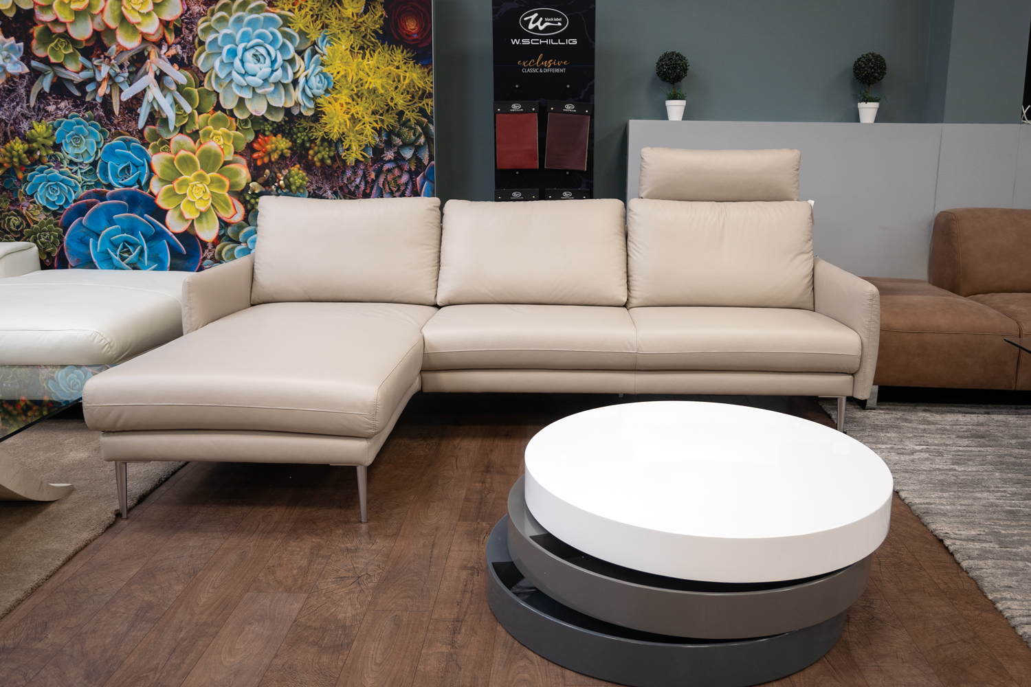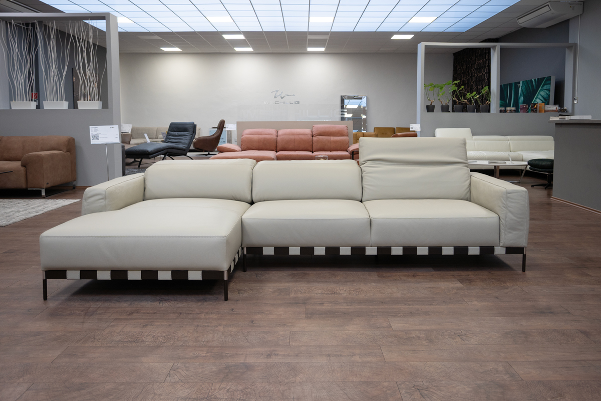 Tato luxusní sedací souprava je vystavena na našem showroomu v Komárně. Výrobcem je německá firma W.SCHILLIG. Krásné čisté linie ji dělají velmi elegantní a nadčasovou. Nechybí komfortní prvky jako nastavitelná hloubka sedu, nastavitelná hlavová opěrka a nastavitelná područka.
